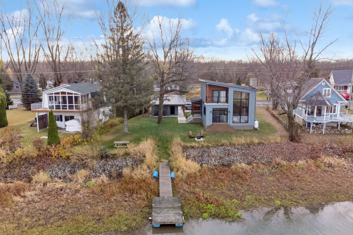 Superbe construction 2022 au bord du Chenal-du-Moine. Rez-de-chaussée avec planchers en béton, escalier en béton autoportant, foyer au gaz et immense mur de fenêtres offrant une vue imprenable sur l'eau. Cuisine moderne avec grand îlot. À l'étage, chambre des maîtres avec plafond cathédrale et balcon privé sur le chenal. Grand terrain de 11 000 pi², garage détaché et accès direct pour votre bateau. Maison vendue entièrement meublée.